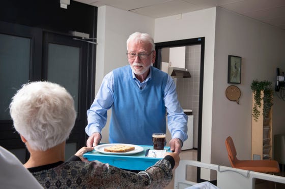 Na een drukke loopbaan in het onderwijs en het openbaar bestuur, mocht ik op 65-jarige leeftijd met pensioen. Voor mij een hele grote overstap van een actief en betrokken leven, naar een periode van zoeken naar een nieuwe en zinvolle invulling van de vele vrije tijd die me gegund werd. Ik zag een vacature bij het Wilhelmina Kinderziekenhuis (WKZ) om als vrijwilliger, kinderen die opgenomen zijn voor een tiendaagse incontinentietraining, te begeleiden bij het huiswerk dat ze van school hadden meegekregen. Dat heb ik toen een tijdje gedaan. Na enige tijd bleek op de afdeling A1, waar mensen met psychische aandoeningen geholpen worden, behoefte te ontstaan aan enkele vrijwilligers. Of ik patiënten na hun ECT-behandeling, die onder narcose op de operatiekamer plaats vindt, wilde helpen met bed en al naar de uitslaapzaal van A1 te brengen en ze daar naar wens een ontbijt wilde geven. Daar ben ik 9 jaar geleden aan begonnen en doe ik nog steeds met veel plezier. Soms kun je ook net iets meer voor iemand betekenen door welgemeende zorg. Door gewoon te luisteren, maar ook door met eigen levenservaring, iemand het warme gevoel van begrip en medeleven te geven. Mooi werk dat ik, na mijn maatschappelijke loopbaan, met heel veel plezier en voldoening doe.